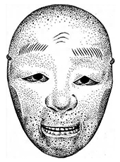 (3)狂言面の一つ。狂言「釣狐」に用いる。僧に化けた狐の、人間との混在した表情を表わす。