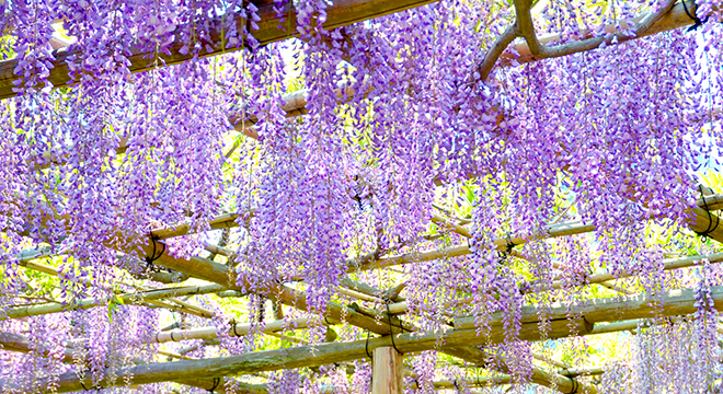 陽射しが強くなればなるほど、戸外で過ごすひとときには樹木の蔭が恋しくもなろう。こうした折節には、斯くも藤棚が相応しい。