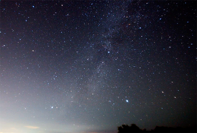 夜空の星々を見上げて「天河」に△形に明るい星を線でつなぐ。右に彦星=牽牛星(わし座一等星アルタイル)、左に織女星(こと座一等星のベガ)、其の頂点にはくちょう座デネブ(Deneb の語源は、「めんどりのシッポ」)で夏の大三角(形)とし、「サマートライアングル(The Summer Triangle)」と見立てられてきた。茲に天の河が白く流れているように地上から捉えることができる。その星と星を結ぶ線刻模様画が九州吉野ヶ里遺跡の貴人埋葬の石棺蓋に描かれていると云う報道があったことで再び注目された。その古え人と東方天空の世界が今のわたしたちに何を伝えて何を見せてくれているのだろうか。明日は愈々「七夕」(旧暦で祝う地域もあるが)、「天の河」は夏だけの風物景ではない。冬の夜空にも見えている。紀貫之は『圡左日記』の一月の条に、「照る月を見れば流るるゝ天の河いづる湊は海にざりにける」と歌にしている。とは言え、ギリシャ神話の「ミルキィーウェイ」(写真図中央縱に白く見える。国立天文台写真画像)となっている。