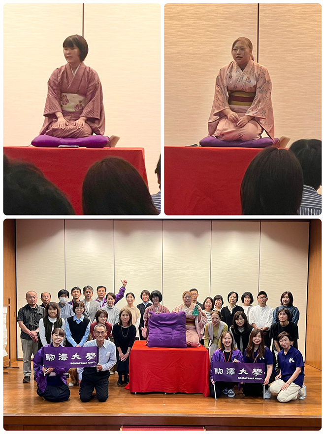 学生が取り組んでいる活動を見学する機会として、落語クラブの鑑賞を行いました。古典と現代を組み合わせた噺など次の展開が興味深く楽しい時間を過ごしました。クラブ紹介やインタビューも行い、「就活にて落語をやっていることで内定に有利だった」とのことでした。ことわざ「芸は身を助ける」の芸を生業にするのではありませんが、社会に出て人と人とのコミュニケーションに話術も役立ち、愛される社会人となることを期待しました。
