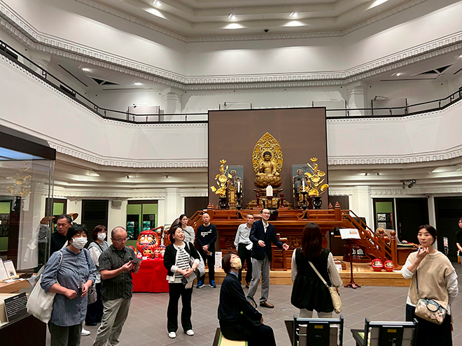 構内見学会ツアーは、種月館が入試のため見学できませんでしたが、別の教場の見学や、普段のツアーでは回らない売店での買い物を楽しみました。1グループに2名の学生ガイドが付きましたが、案内がとても上手で、掛け合いでのエピソード紹介や、クイズ形式での説明など印象に残る説明でした。また、駒膳の席数の多さや人気メニューなど学生さんの生の声も聞けました。図書館では、建物の大きさが地下3階、地上6階もあり、収蔵書籍が125 万冊と聞き、驚きました。最後に禅文化歴史博物館を見学し、禅と駒澤大学の歴史を学びました。建物も特徴的で国の登録有形文化財であることの重みを感じました。